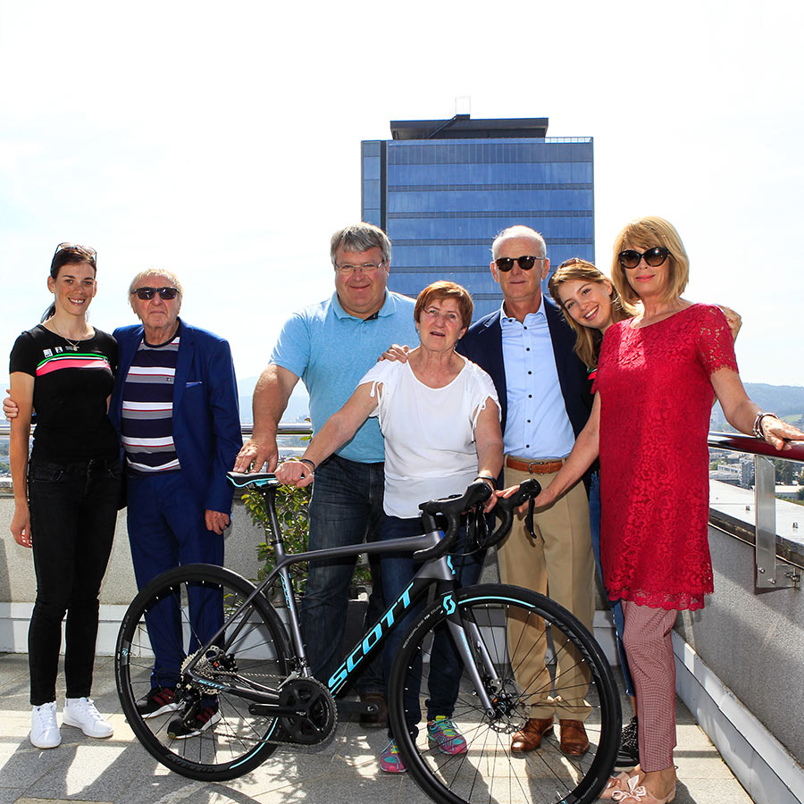 Letošnjo jesen Tonka Zadnikar načrtuje 1.000 km dolgo kolesarsko pot okrog Slovenije. Za dobro popotnico ji je danes Jože Mermal, predsednik uprave družbe BTC, v družbi deklet iz kolesarske ekipe BTC City Ljubljana in nepogrešljivega Toneta Fornezzija TOF-a, podaril žensko karbonsko specialko....